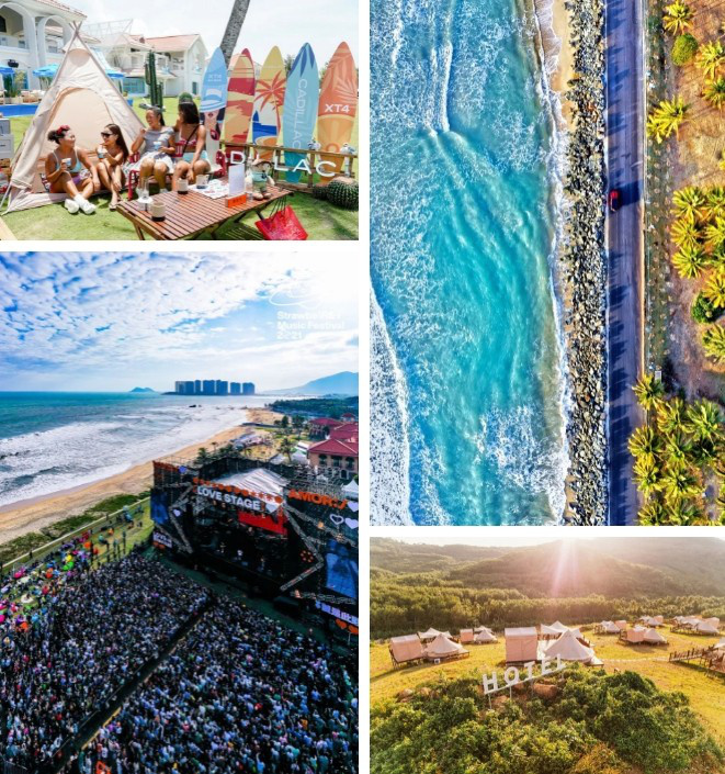 各具特色的冲浪俱乐部、休闲浪漫的餐馆酒馆以及穿着打扮时尚的青年男女,无一不展示这个“冲浪胜地”的青春活力。游客白天可以畅享冲浪的激情,漫步在充满文艺气息的日月湾街区,享受一望无际的大海、治愈的婆娑椰林、随处可见的街头冲浪文化涂鸦和一间间面朝大海的咖啡馆、休闲餐厅、冲浪民宿